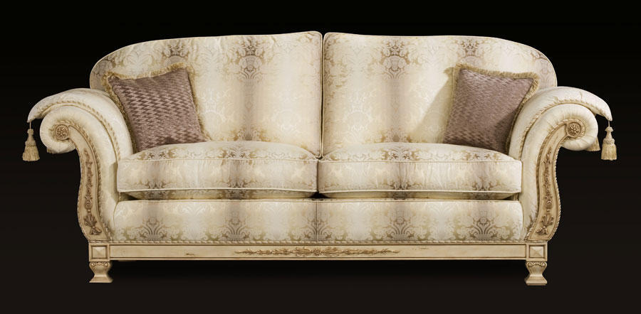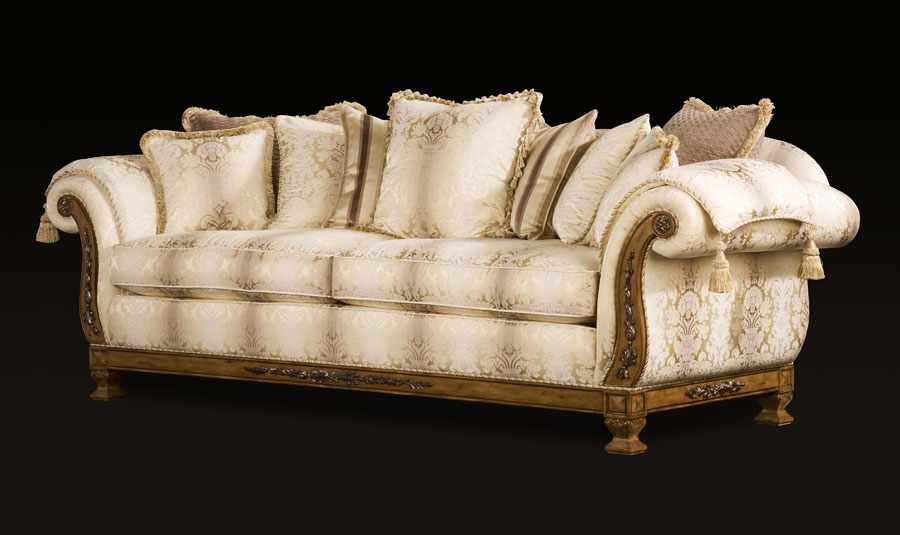 The Italian influence on this beautiful hand crafted and opulent piece is instantly apparent. Individually hand cut and then tailored by a single bench trained craftsman and accurately lock stitched by our quality-trained seamstresses to produce an attractive, luxurious and contoured piece of the finest quality. The model consists of hardwood frame glued, screwed and dowelled; full coil mesh top spring unit throughout. A choice of cushion interiors is available, from sumptuous Dacron, luxurious duck feather or strata reflex foam. Scatter cushions are duck feather as standard with the option of fibre. Alternative frame finishes are available from our Italian show wood gallery.