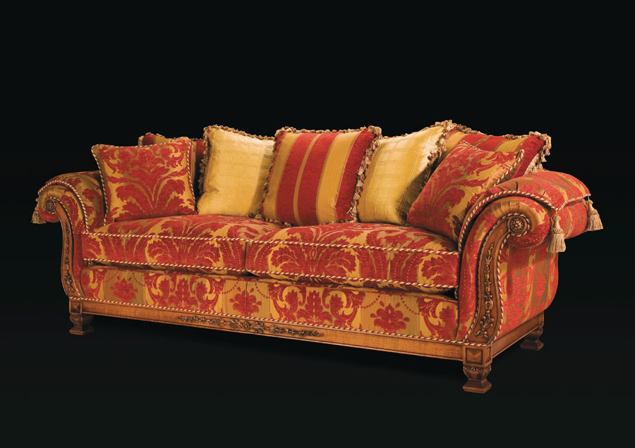The Italian influence on this beautiful hand crafted and opulent piece is instantly apparent. Individually hand cut and then tailored by a single bench trained craftsman and accurately lock stitched by our quality-trained seamstresses to produce an attractive, luxurious and contoured piece of the finest quality. The model consists of hardwood frame glued, screwed and dowelled; full coil mesh top spring unit throughout. A choice of cushion interiors is available, from sumptuous Dacron, luxurious duck feather or strata reflex foam. Scatter cushions are duck feather as standard with the option of fibre. Alternative frame finishes are available from our Italian show wood gallery.