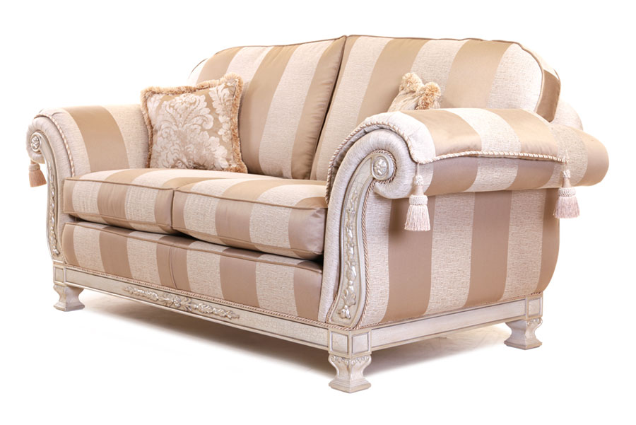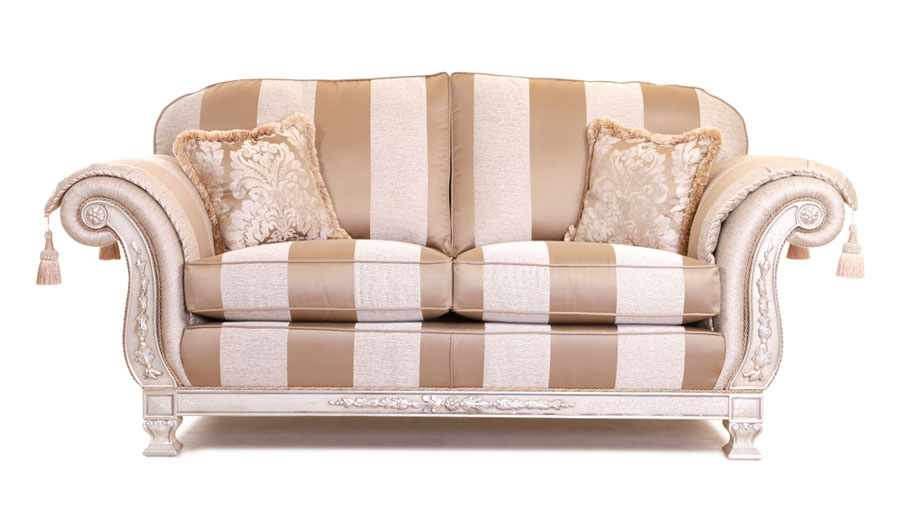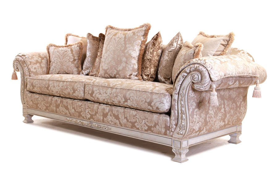 The Italian influence on this beautiful hand crafted and opulent piece is instantly apparent. Individually hand cut and then tailored by a single bench trained craftsman and accurately lock stitched by our quality-trained seamstresses to produce an attractive, luxurious and contoured piece of the finest quality. The model consists of hardwood frame glued, screwed and dowelled; full coil mesh top spring unit throughout. A choice of cushion interiors is available, from sumptuous Dacron, luxurious duck feather or strata reflex foam. Scatter cushions are duck feather as standard with the option of fibre. Alternative frame finishes are available from our Italian show wood gallery.