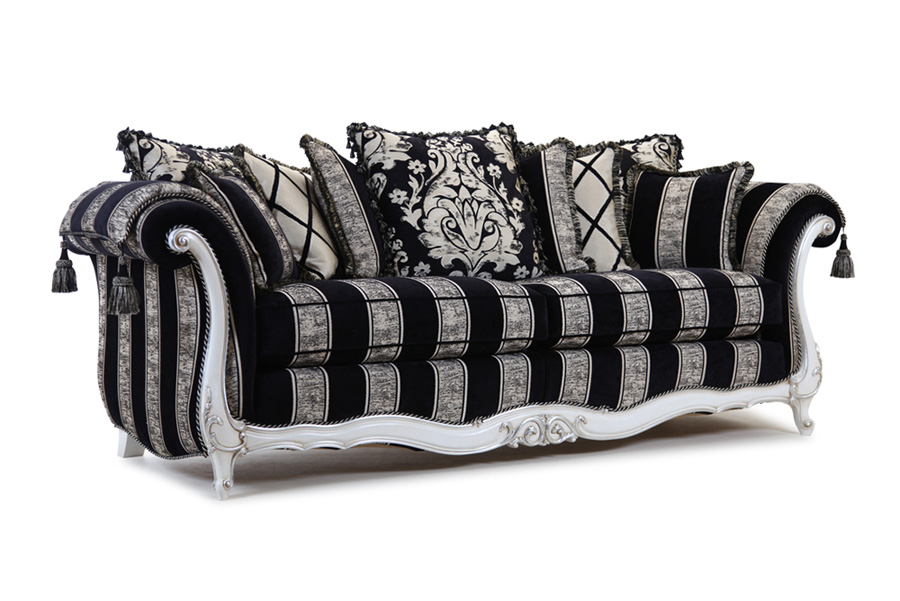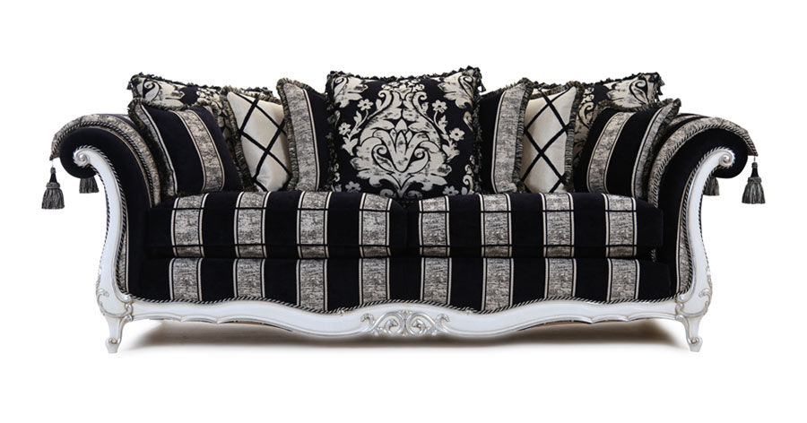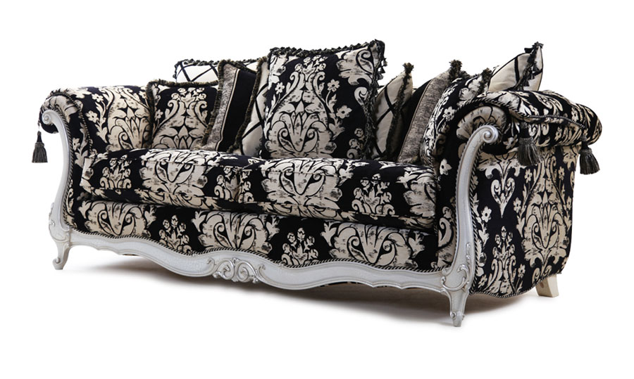 The elegant Venice is a perfect example of craftmentship, combining fine upholstery and intricate carving skills handed down over the generations to produce this beautiful piece. Each piece is individually hand cut and then tailored by a single bench trained craftsman and accurately lock stitched by our quality-trained seamstresses to produce an attractive, luxurious and contoured piece of the finest quality. The model consists of hardwood frame glued, screwed and dowelled; full coil mesh top spring unit throughout. A choice of cushion interiors is available, from sumptuous Dacron, luxurious duck feather or strata reflex foam. Scatter cushions are duck feather as standard with the option of fibre.Alternative frame finishes are available from our Italian show wood gallery.