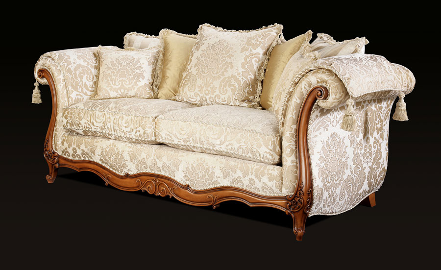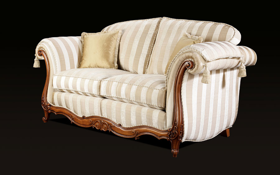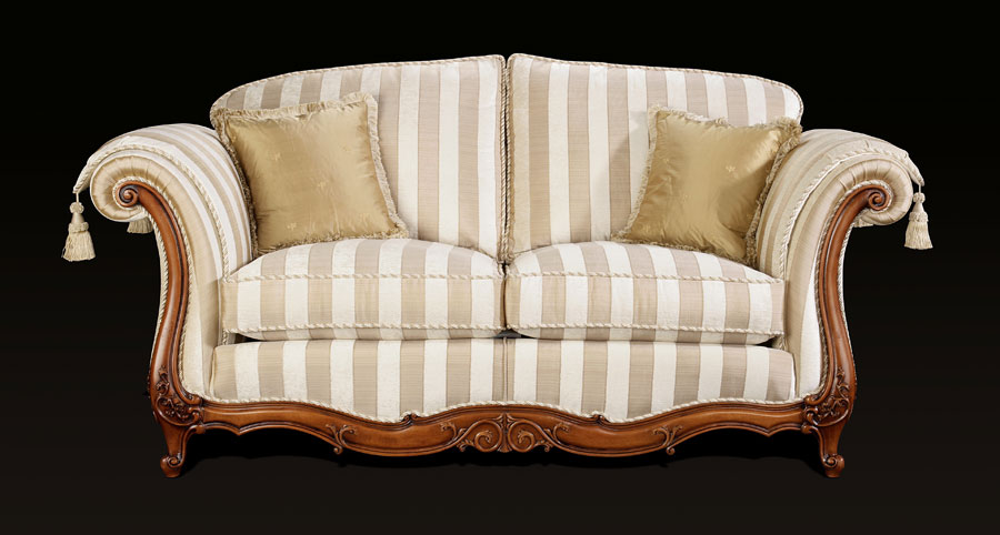 The elegant Venice is a perfect example of craftmentship, combining fine upholstery and intricate carving skills handed down over the generations to produce this beautiful piece. Each piece is individually hand cut and then tailored by a single bench trained craftsman and accurately lock stitched by our quality-trained seamstresses to produce an attractive, luxurious and contoured piece of the finest quality. The model consists of hardwood frame glued, screwed and dowelled; full coil mesh top spring unit throughout. A choice of cushion interiors is available, from sumptuous Dacron, luxurious duck feather or strata reflex foam. Scatter cushions are duck feather as standard with the option of fibre.Alternative frame finishes are available from our Italian show wood gallery.