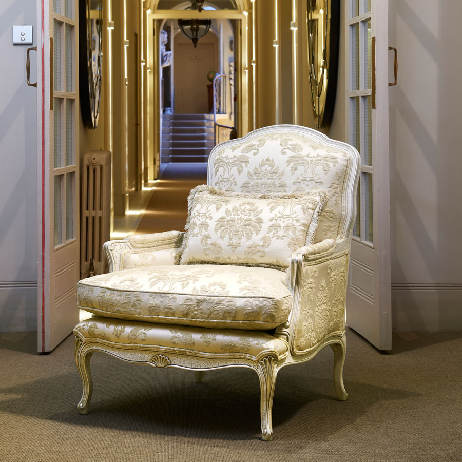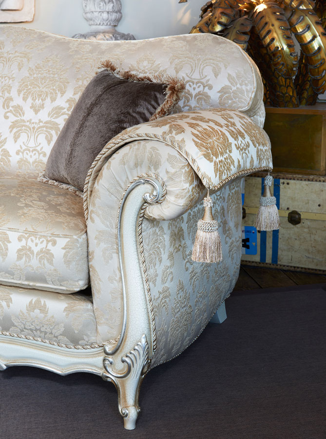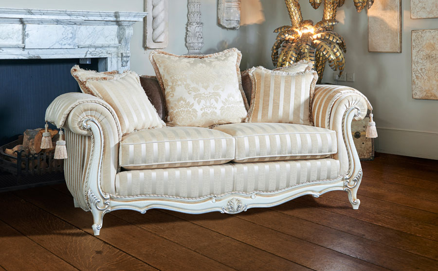 The Florence, inspired by the elegant renaissance period, is extravagant in its fine decorative styling. Individually hand cut and then tailored by a single bench trained craftsman and accurately lock stitched by our quality-trained seamstresses to produce an attractive, luxurious and contoured piece of the finest quality. The model consists of hardwood frame glued, screwed and dowelled; full coil mesh top spring unit throughout. A choice of cushion interiors is available, from sumptuous Dacron, luxurious duck feather or strata reflex foam. Scatter cushions are duck feather as standard with the option of fibre. Alternative frame finishes are available from our Italian show wood gallery.