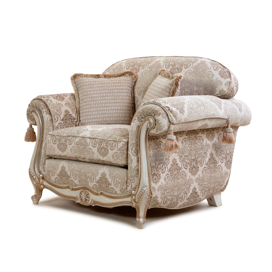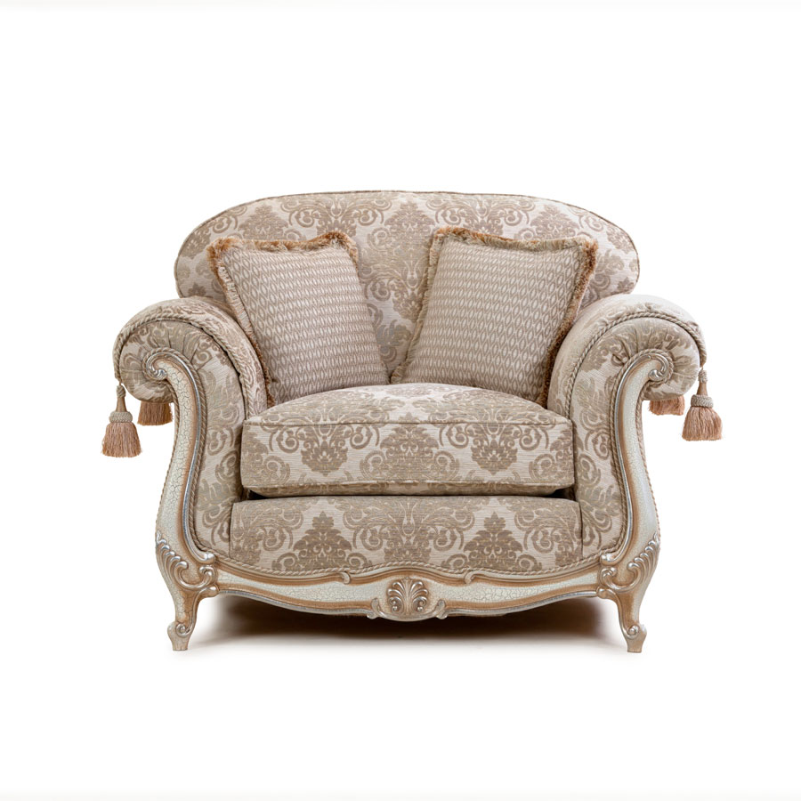 The Florence, inspired by the elegant renaissance period, is extravagant in its fine decorative styling. Individually hand cut and then tailored by a single bench trained craftsman and accurately lock stitched by our quality-trained seamstresses to produce an attractive, luxurious and contoured piece of the finest quality. The model consists of hardwood frame glued, screwed and dowelled; full coil mesh top spring unit throughout. A choice of cushion interiors is available, from sumptuous Dacron, luxurious duck feather or strata reflex foam. Scatter cushions are duck feather as standard with the option of fibre. Alternative frame finishes are available from our Italian show wood gallery.